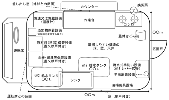 運転席部分と調理場部分を区画分けする仕切りを設置しなくてはいけません。