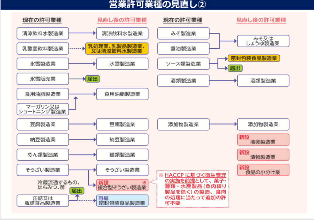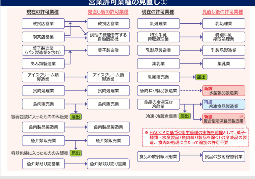 厚生労働省HP 食品衛生法改正について 『営業許可業種の見直しの考え方』より抜粋